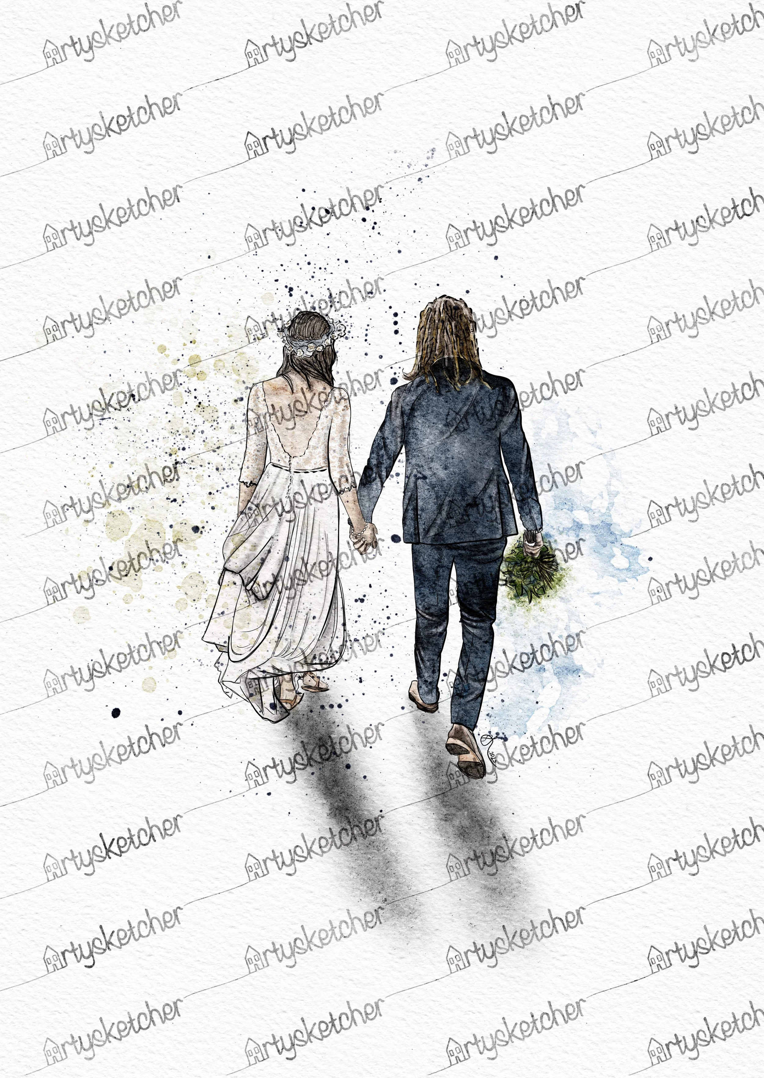 A custom, digitally, hand-drawn memory portrait is a unique, handcrafted piece of art that transforms your cherished photos into timeless keepsakes. Memory portraits from a rear/side view offer a unique way to preserve the intimacy; they immortalise a personal moment the subject was completely unaware was being documented.