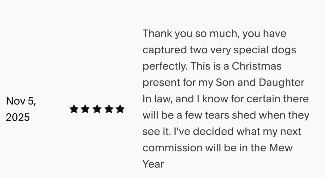 Hand-drawn Perfection: Each portrait is meticulously drawn by myself on an iPad, capturing your pet’s features, textures and that little twinkle in their eye.