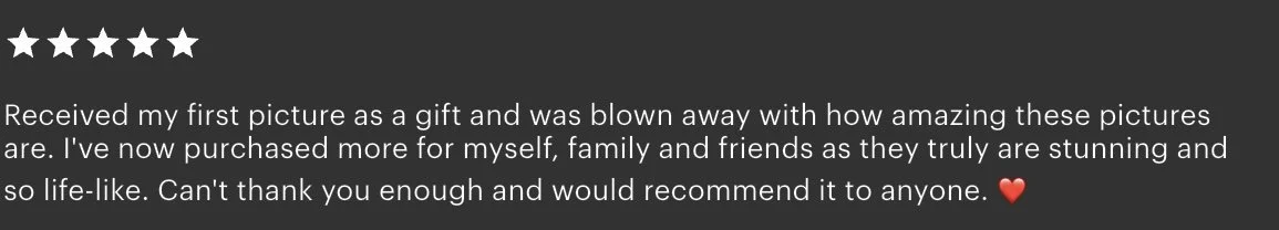 Share your photos: After you have made your purchase, please send me a message, using the contact form at the bottom of the page, with your own high quality images and order number (check out the reference image guide to help you get the very best images). You are welcome to send multiple images and we can chat about which would make the best portrait.